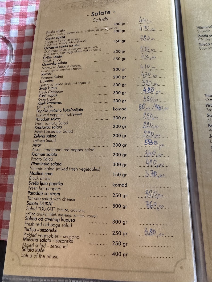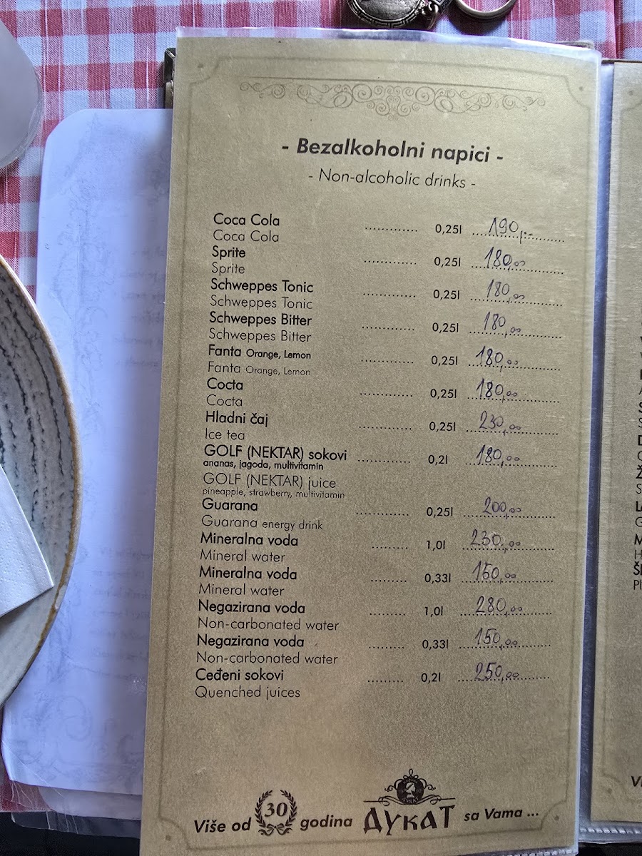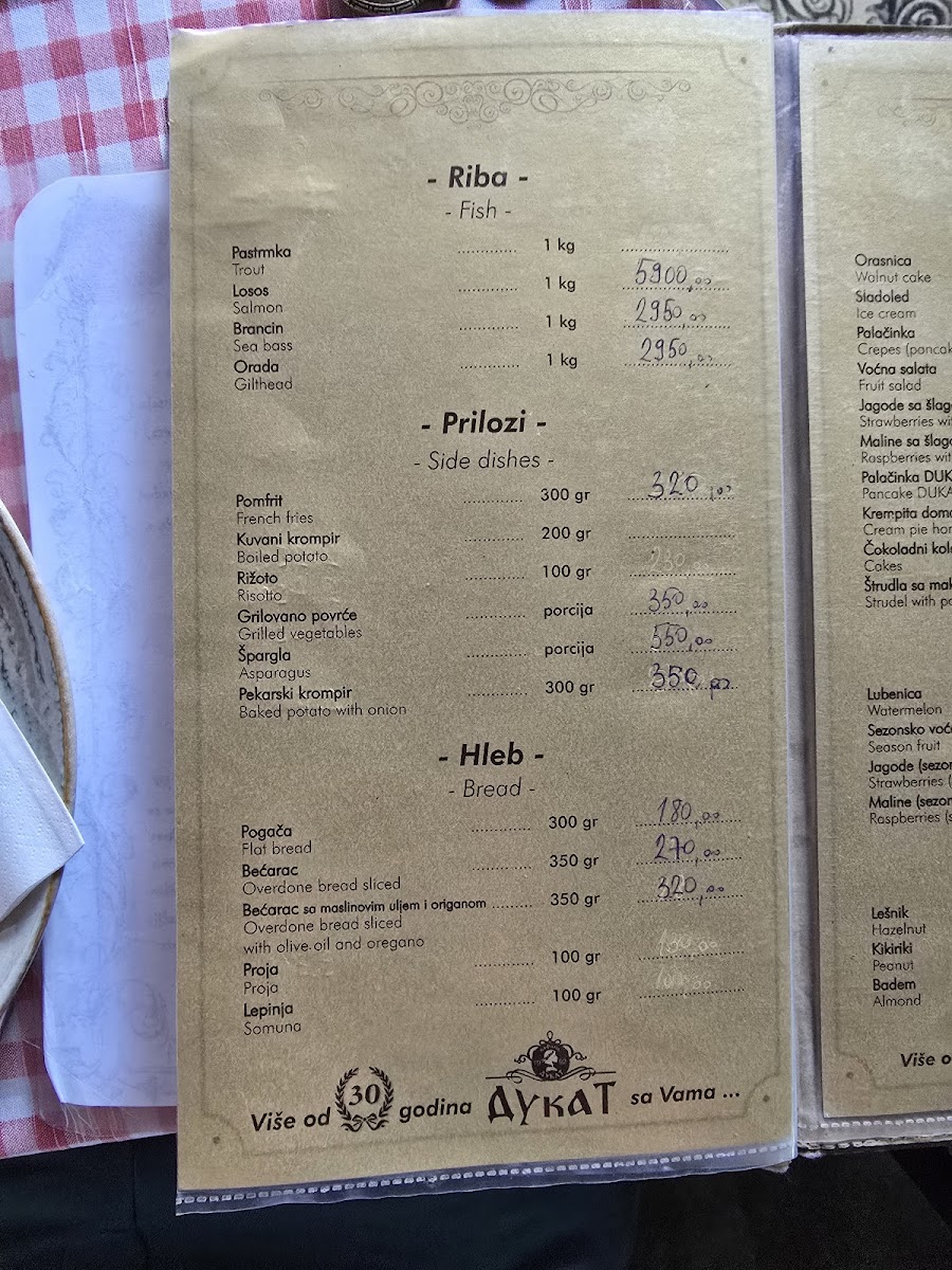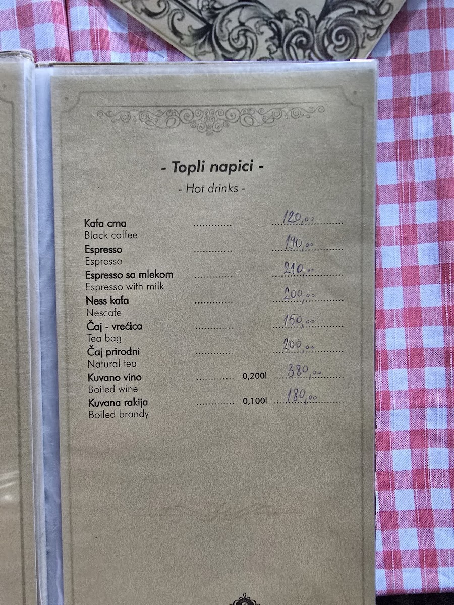 Kafana Dukat Pirot Menu
